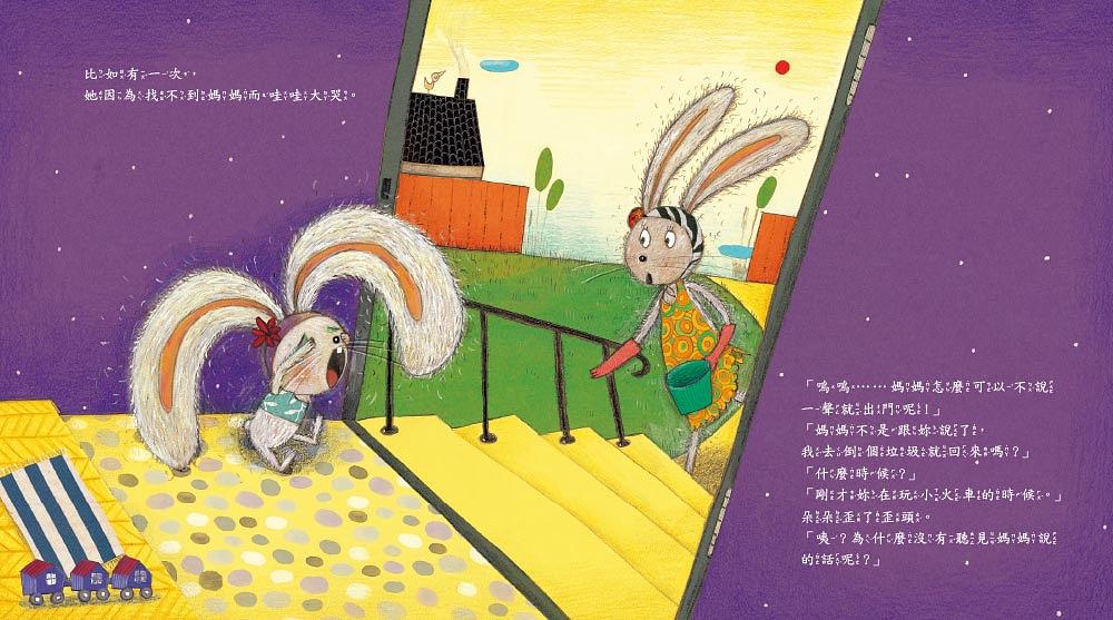 內容介紹: 【專注力/溝通能力】 朵朵是一隻兔子。 她耳朵很大,卻常常沒注意聽別人說的話-- 媽媽告訴她要出門一下,她卻哭喊媽媽不見了, 朋友告訴她約定的地點,她還是到處找朋友。 同學請她帶紙箱到學校,她卻帶成了色紙! 有一天,朵朵的耳朵竟然掉出了一隻蟲子! 而且,這隻蟲還是一隻會吃「話」的吃話蟲……