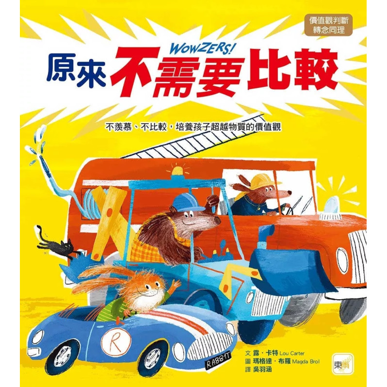 這也讓兔子開始反思,這些酷炫東西存在的意義,就只有炫耀的功能嗎?而炫耀自己所擁有的物品這件事,真的有這麼重要嗎?最後,兔子想了一個很棒的計畫,使用那些酷炫的裝備,幫助大家一起成功解救小貓。希望藉由這部具活力又生動的作品,帶著孩子探索同儕比較、得失心的課題,以及思考友情真正的真諦。