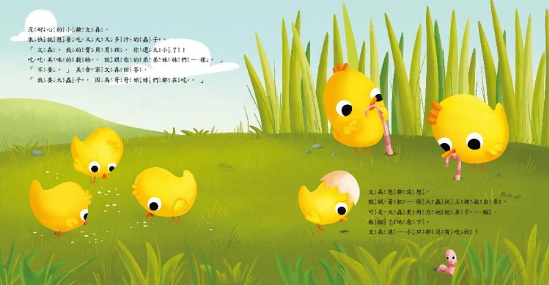 家裡若是也有個沒耐心的小雞文森寶寶,爸媽不妨藉由共讀故事,和孩子一起討論小雞那些沒耐心的舉動,是不是適合?為什麼小雞媽媽要勸阻他呢?再進而問問孩子,如果他是小雞又會怎麼做呢?可以給予小雞什麼建議呢?