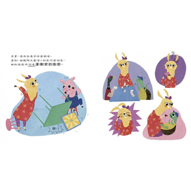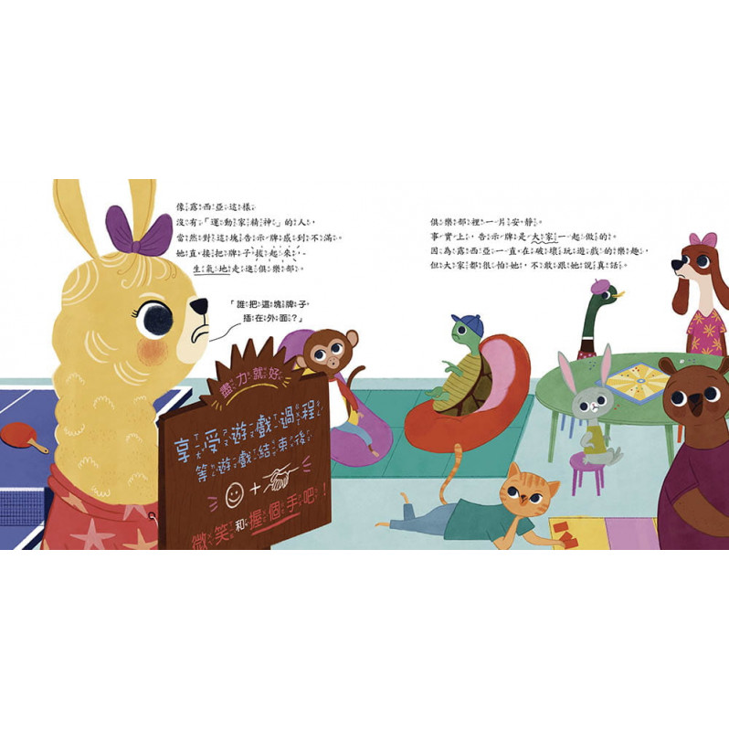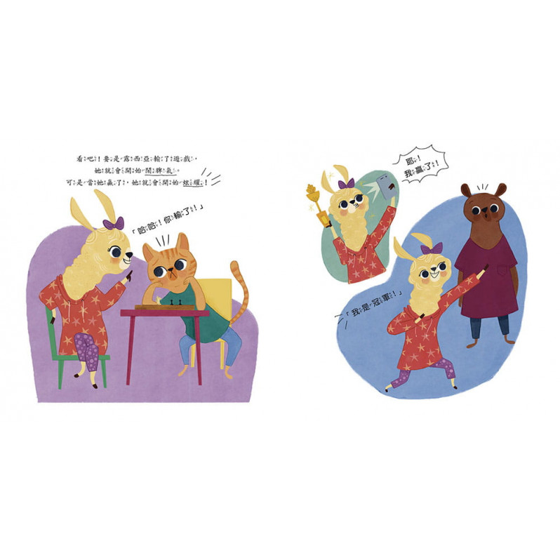 第一次翻閱這本書,最讓人印象深刻的一張圖,便是輸掉遊戲的露西亞生氣地翻桌的畫面,讓人忍俊不住同時,也覺得畫得太生動貼切了!「翻桌」──從古到今,這都是我們用來形容輸不起的人會有的經典動作啊!
