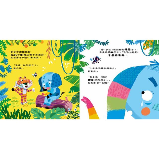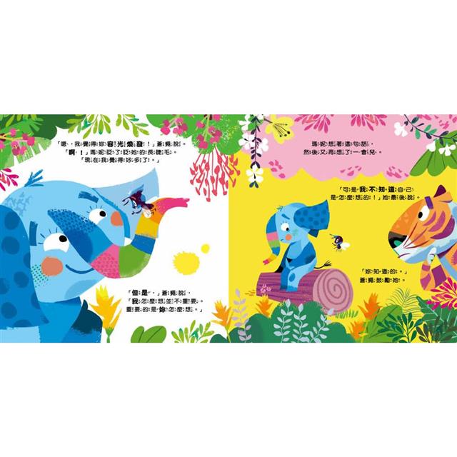 而這一次故事裡的大象瑪妮,則是每天早上都需要依靠他人給予的稱讚與肯定,才有辦法對自己保持自信與擁有愉悅心情,卻沒想到有一天竟然碰到了完全沒有人給予她稱讚的狀況,於是非常焦慮。