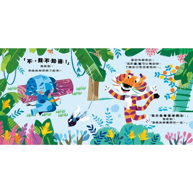 小讀者可以藉由各種動物角色生動的姿態,以及趣味可愛的瑜伽畫面呈現,跟著劇情一同思考,來檢視自我的情緒,並試著學大象瑪妮一樣和自己對話:「我現在的感覺如何呢?」、「我覺得自己是一個怎麼樣的人呢?」、「如果沒有人肯定我,我可不可以當第一個呢?」再利用一些簡易的瑜伽小活動,來平緩內心的焦慮和調整情緒反應。