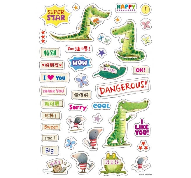 →讓孩子在閱讀繪本後,藉著使用貼紙上的詞彙,