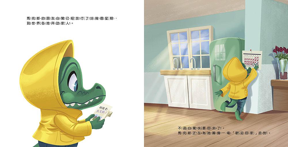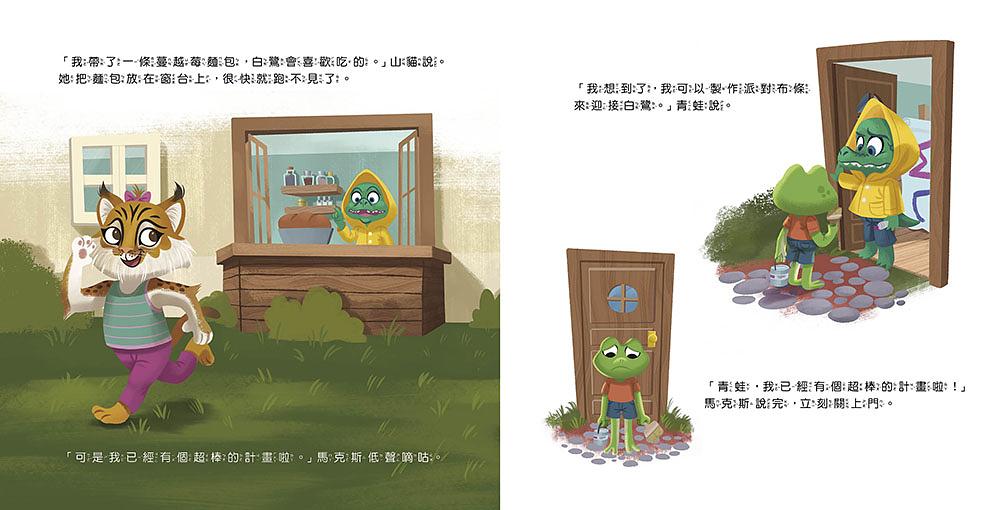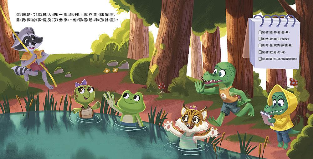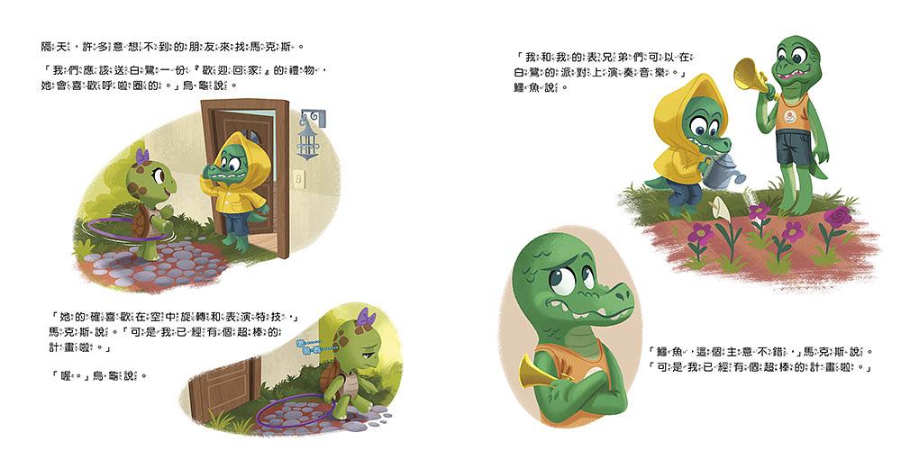 內容介紹: 鱷魚馬克斯的朋友白鷺即將結束旅行, 馬克斯計畫為她舉辦一場盛大的「歡迎回家派對」, 其他的朋友也想加入籌備工作,但馬克斯堅持要自己做…… 畢竟,他已經有一個超棒的完美計畫! 但是,他的派對計畫卻一再遇到問題, 這時馬克斯才意識到, 光有一個超棒的計畫是不夠的……… 馬克斯能否及時學會 如何成為一個更好的領導者, 來拯救這個屬於白鷺的派對?
