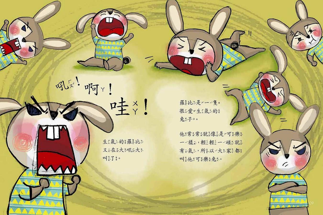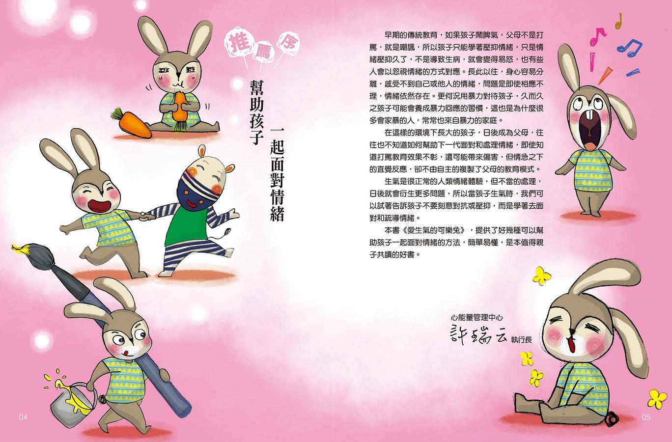 失控的女兒,常讓美琪焦頭爛額,但創意總在困境中乍現。美琪嘗試引導,建議女兒生氣時暫時離開現場、哭一哭或休息……,並將這些互動的生活點滴,透過畫筆和童趣的文字,呈現在《氣噗噗的可樂兔》繪本中。