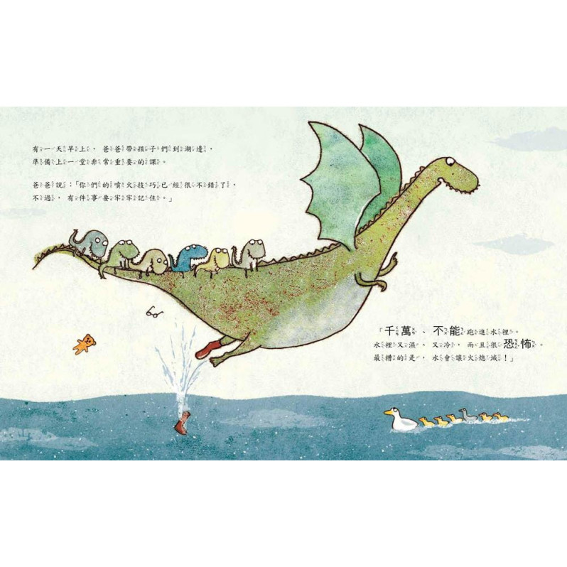 ▸▸ 噴火龍會飛、會噴火,每隻都好威風!可是有隻小火龍,跟兄弟姊妹都不同……。她不喜歡火,甚至不會飛,但她還是努力學噴火、拚命想學飛,希望爸爸能以她為榮。好不容易飛上天,她卻不小心掉到湖裡面。小火龍好緊張!因為爸爸曾經說:「水裡又濕又冷,還會澆熄火,很恐怖!」可是,濕答答的小火龍卻發現,待在水裡簡直「棒 ~ 呆 ~ 了 !」怎麼會這樣?難道…… 這隻小火龍,其實不是龍?
