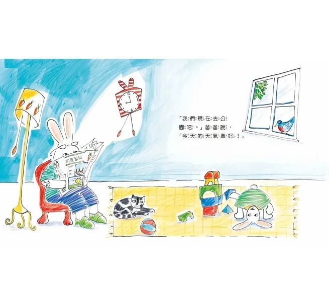 透過爸爸和小兔子間幽默俏皮的日常對白,