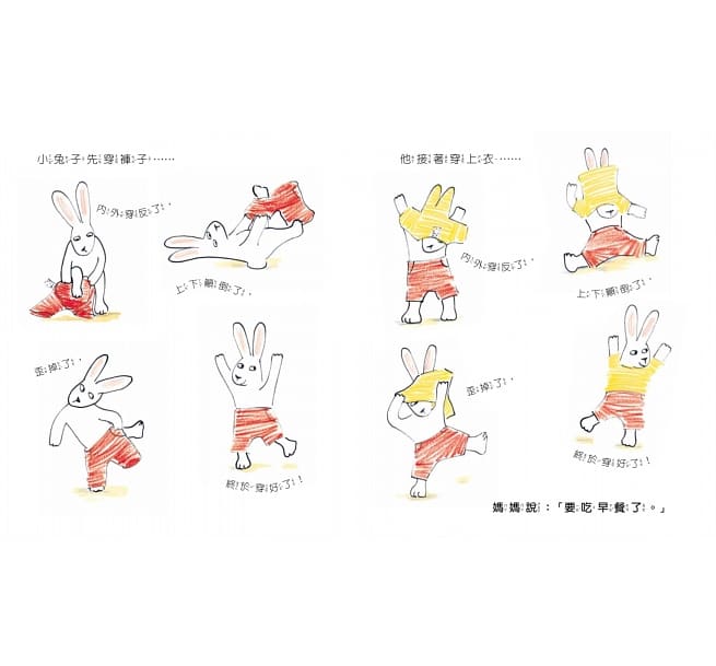 媽媽說:「要起床穿衣服了。」