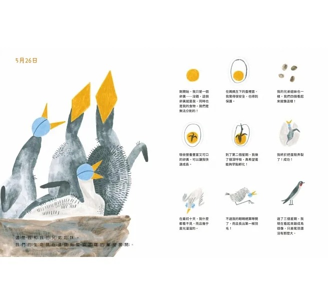 在這本繪本裡,讓我們跟著初長成的小燕子,