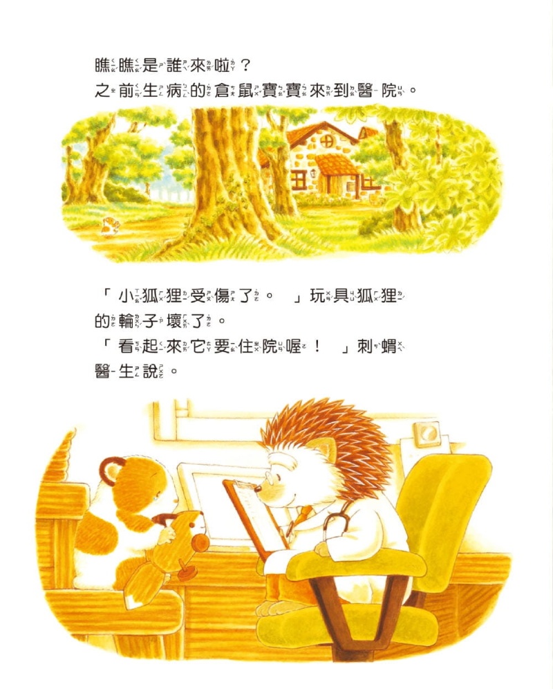 這個故事講述了一位小小的刺猬醫生,貼心治療森林裡動物們身心靈的圖畫書。