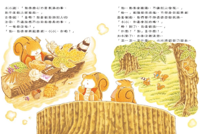 內容介紹: 還記得櫟樹森林松鼠學校,那五隻可愛的小松鼠學生嗎?這一次他們也準備要開學囉!沒想到這次校長宣布一個大活動:「請你們表演自己擅長的才藝給大家看」WOW~ 這次這五隻小松鼠將各自準備令人驚喜的拿手表演,而且過程相當曲折有趣唷!我們一起來翻閱這次才藝表演的,敬請期待吧!
