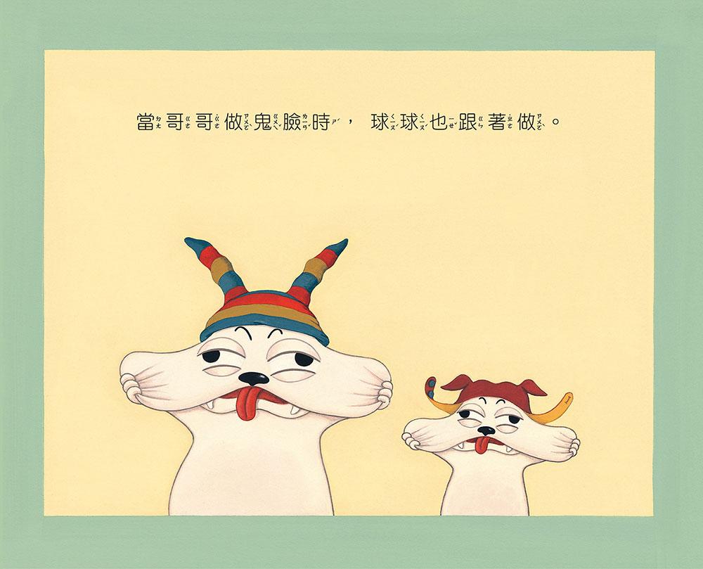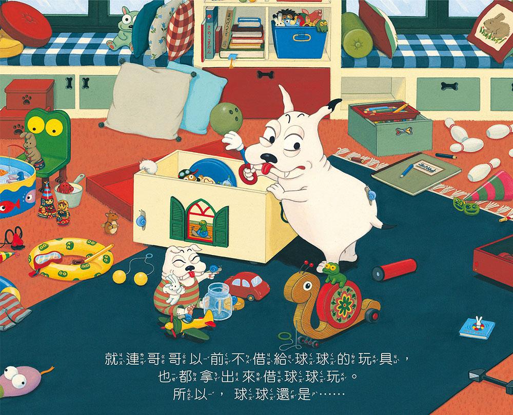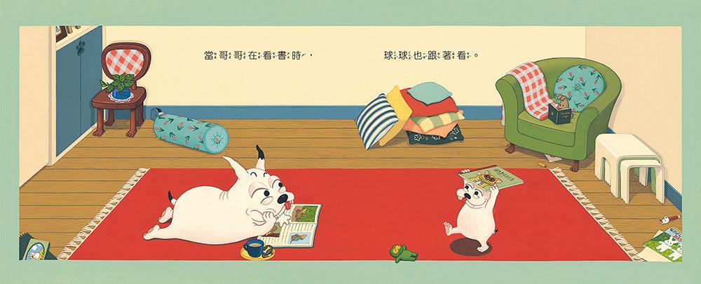 球球最愛哥哥了,所以總是愛模仿哥哥,哥哥畫圖時,球球也要畫圖;哥哥看書時,球球也跟著看書;哥哥睡著了,球球也跟著睡……面對這黏人的傢伙,哥哥只好想辦法逃離球球的糾纏……
