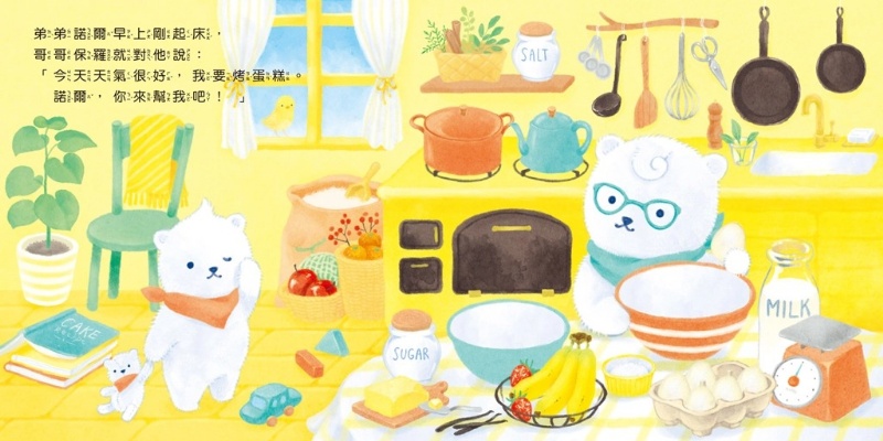 今天白熊兄弟的哥哥保羅突然心血來潮,決定要好好做蛋糕,而且還拿去市場擺攤呢!