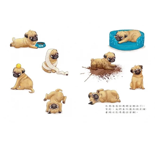 「笑一笑嘛,寶貝。」這是一本關於一隻可愛小巴哥狗狗的故事,只不過他總是擺著酷酷的一張臉,不喜歡笑,為了要拍一張漂亮的全家福,後來有好多動物想盡各種辦法來逗逗小巴哥笑出來,可是怎麼做都無法成功……沒想到最後,突然發生一個有趣的事情,在按下快門的瞬間,小巴哥突然笑了,這到底是怎麼一回事呢?