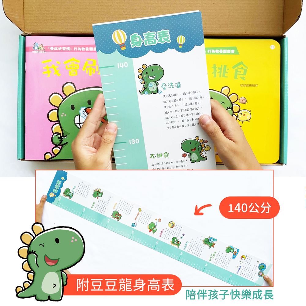 內容介紹: ★全系列共20冊 ★一套教育孩子學會生活好習慣、懂得保護自己圖畫書 ★立即掃描QR Code,爸媽不用唸字,輕鬆陪同,睡前好讀物 ★內附贈身高表 ★10個生活習慣故事 ★10個安全故事 ★10個安全小提示 ★透過主角豆豆龍一家人遇到的事情,引導孩子當遇到同樣事情該如何反應,保護自己的安全優先,打開書本,親子一起聽故事。 適讀年齡2~5歲 商品規格:盒裝尺寸39×19cm / 一盒共20本合售 / 1本共20頁