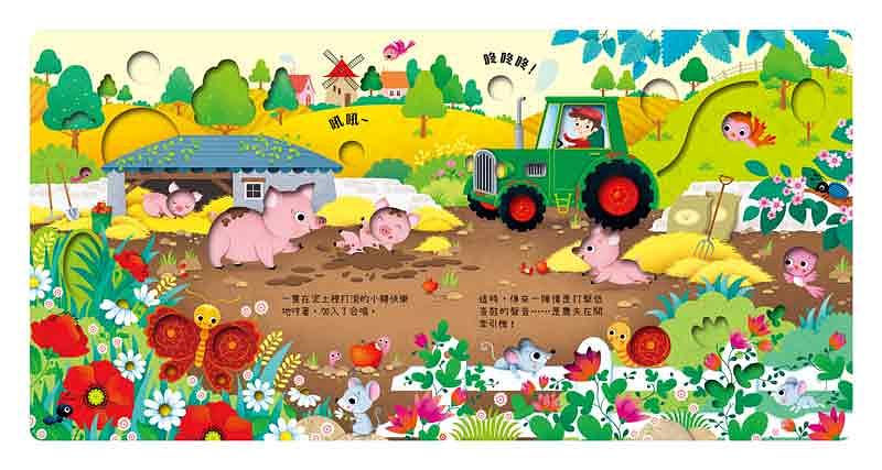 按下書中的按鍵,聽見農場裡10種有趣的聲音,並且觸摸多個形狀凹槽,促進五感發展。