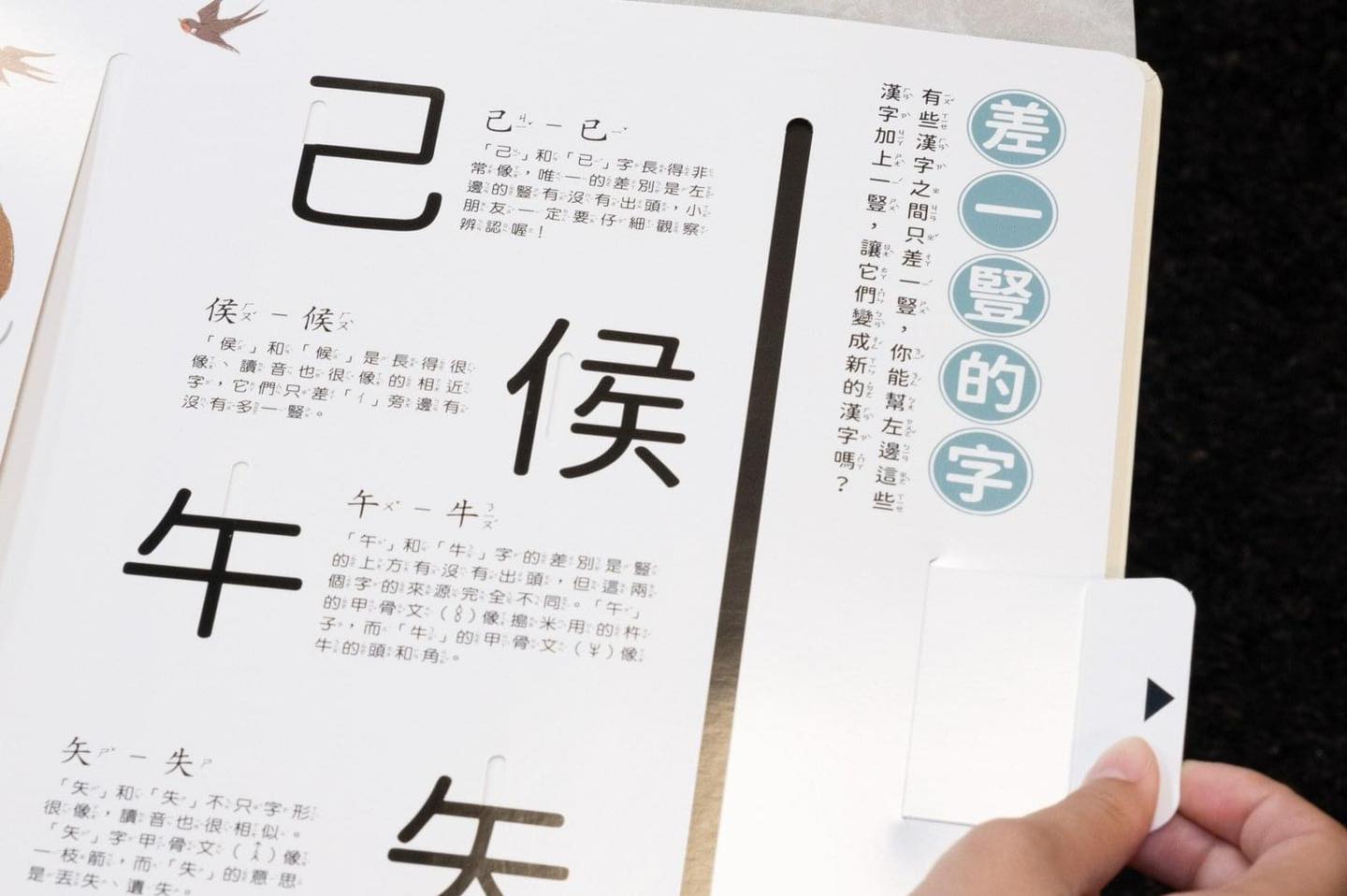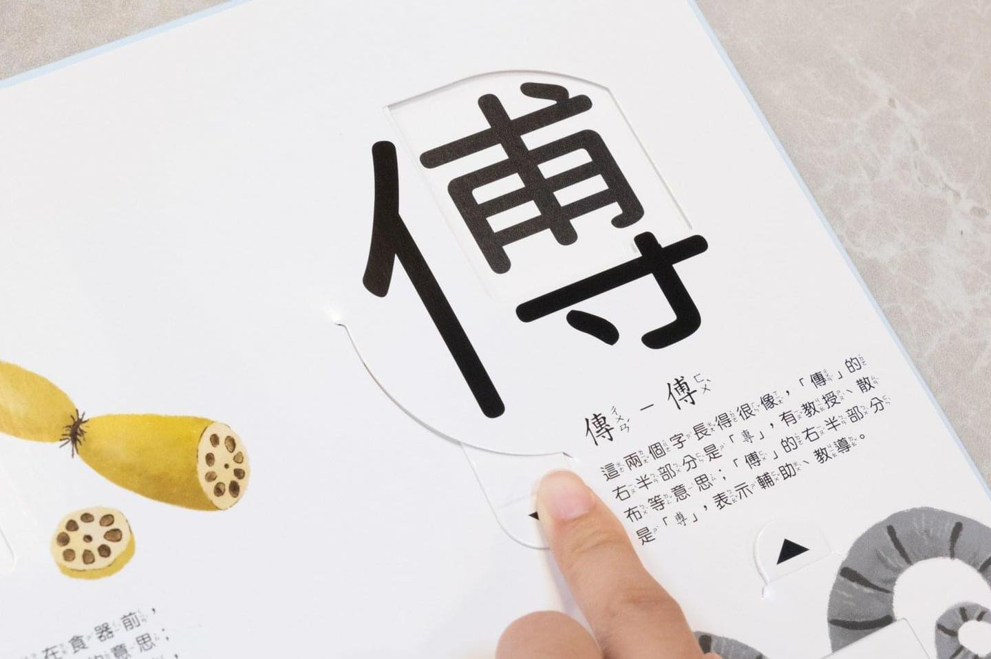 本書有多達70個互動遊戲機關,包含翻翻頁、立體頁、轉轉齒輪等,讓孩子一邊認識國字、一邊動手操作,體驗漢字的神奇大變身,用機關互動的方式講解,不但增添趣味性,也加深學習印象!