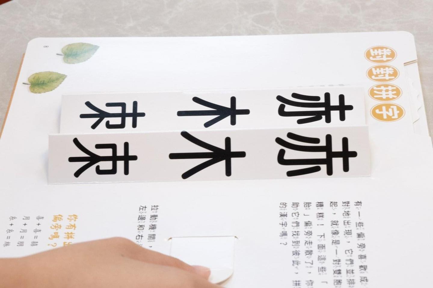 本書精選超過200個常見且實用的漢字,讓孩子學習識字大大超前進度!除了透過機關呈現,在最後一頁也統整出生字表,幫助孩子複習學到的漢字。