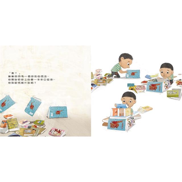 突然,他發現書本悄悄地在動了?