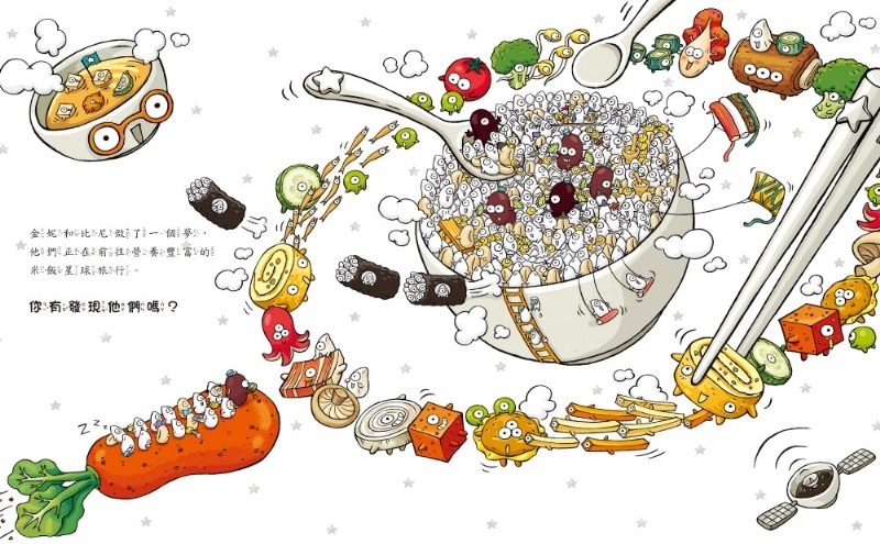 餐桌上的食物們不再只是靜靜的待在盤子上,他們不但會呼喊著孩子們來吃掉自己,還會手拉手跳起舞來,就像被施予了魔法一般,生動有趣的行為表現吸引了大朋友、小朋友的注意,讓人期待故事的發展。