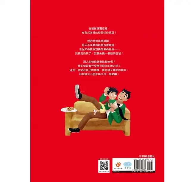 內文用字淺白,採用最貼近小孩心境的對話方式,寫出孩子與爸爸相處時的模式,反轉的劇情、幽默風趣的圖文搭配,讓故事更生動活潑,也讓孩子從圖中充分發揮想像力。