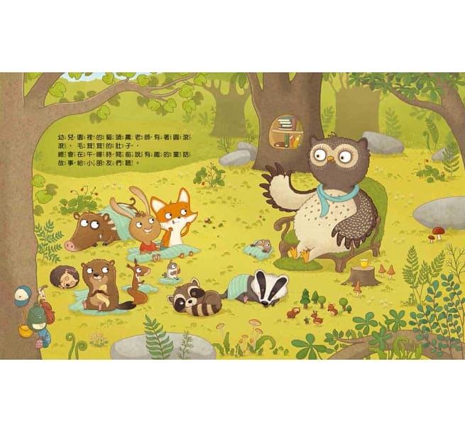 他很喜歡和森林幼兒園的好朋友們玩耍,