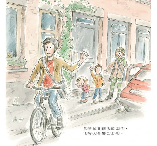 書中的爸爸每天都很忙,除了工作以外,也在孩子的身上花了很多時間,無論孩子們是難過或者開心,爸爸總會陪在身旁,陪著他們解決難過的事情,也陪著他們度過歡樂的時光,這一切在在都證明了爸爸對孩子無與倫比的愛。