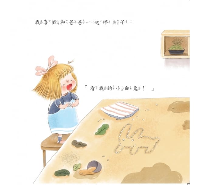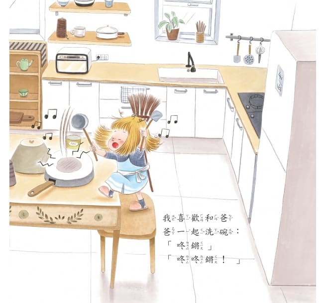 內容介紹: 每個星期我最期待的,就是和爸爸做家事! 洗碗咚咚鏘,就像打鼓一樣熱鬧。 抓起吸塵器向前衝,下一個要消滅哪個大壞蛋? 跳進洗衣槽,腳上踩的是蓬蓬的白色浪花, 快加入我和爸爸的家事特攻隊, 看看我們怎麼把家事變得好玩又有趣。