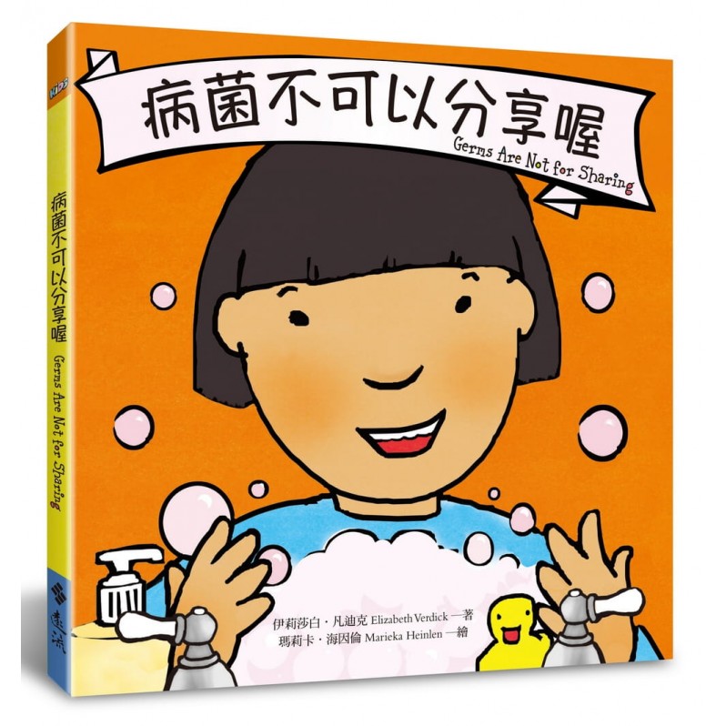 內容介紹: 玩具可以分享,但病菌不可以分享給別人喔, 要記得把手洗乾淨, 因為病菌會讓人生病。 哈啾!哈啾!這時候該怎麼做? 拿衛生紙,擤掉鼻涕,擦乾淨,然後丟掉。 咳!咳!這時候該怎麼做? 轉過頭。用衣服袖子遮著咳。 然後,要洗手! 還有什麼時候要洗手? 吃東西前、手弄得髒髒、上完廁所, 或者任何需要洗手的時候。 要怎樣把手洗乾淨呢? 先沖水、抹上肥皂、搓出很多泡泡、好好沖洗,然後擦乾。