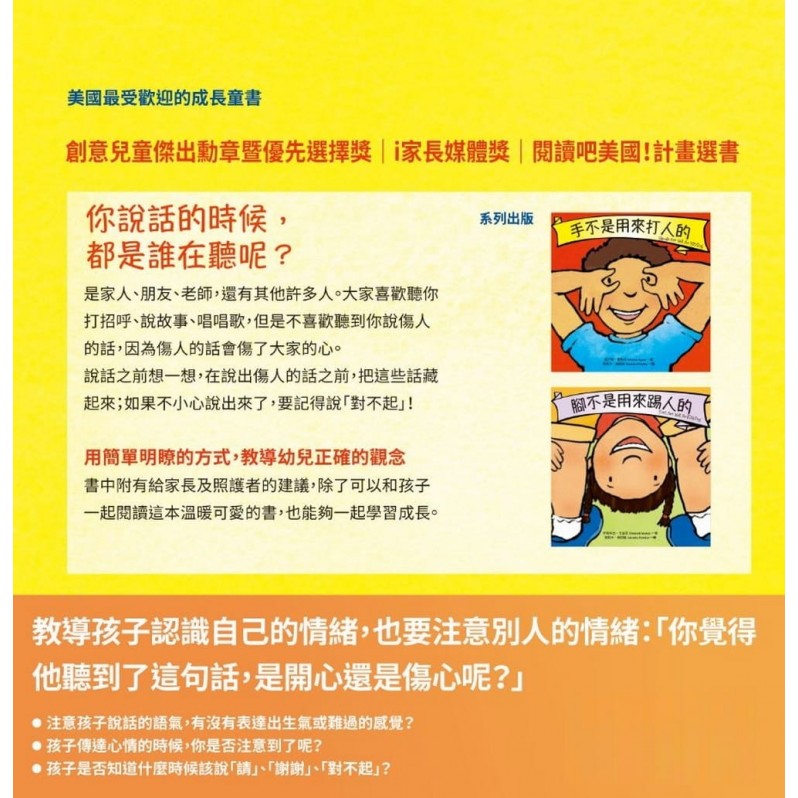 說話之前先想一想,在說出傷人的話之前,先把這些話藏起來;如果不小心說出口了,要記得說「對不起」!