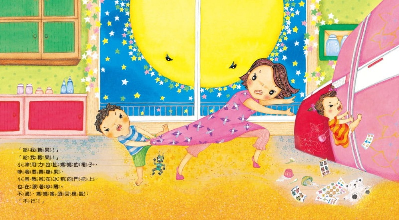 深夜裡小津和小恩突然無理取鬧的吵著向媽媽要糖果吃,