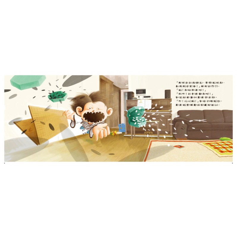 把家裡弄得一團亂,媽媽生氣地要他出去,