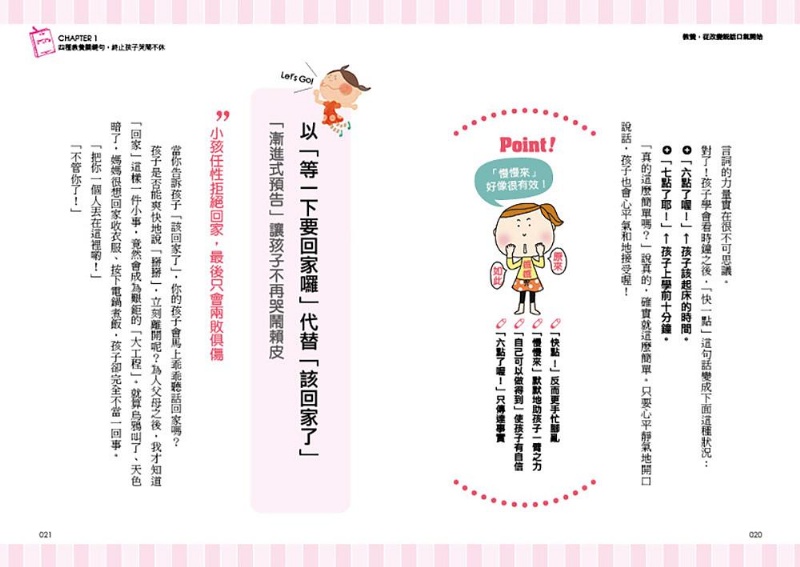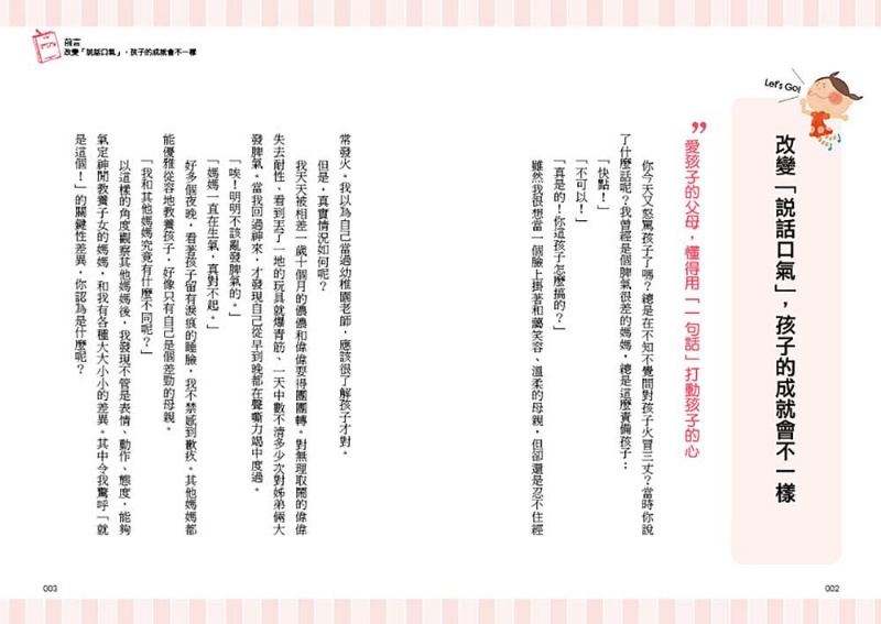 1. 「一句話」引導式教養──教養不必責罵,只要改變一句話、一個口氣,就能看到孩子不一樣的改變。