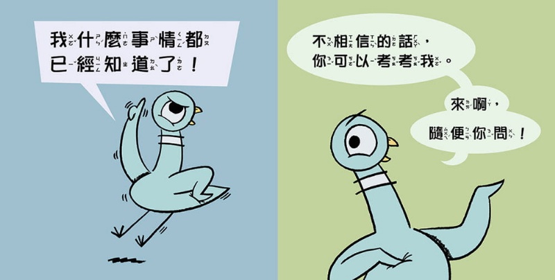 隨著鴿子一貫的唱反調,讓故事,反向教育孩子應遵循的習慣與品德。