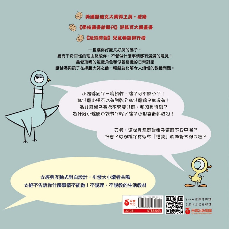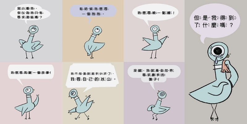 隨著鴿子一貫的唱反調,讓故事,反向教育孩子應遵循的習慣與品德。