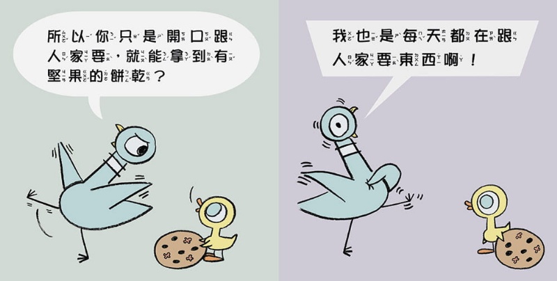 為什麼小鴨開口就有了呢?鴿子也很喜歡餅乾呀,為什麼沒人給他?