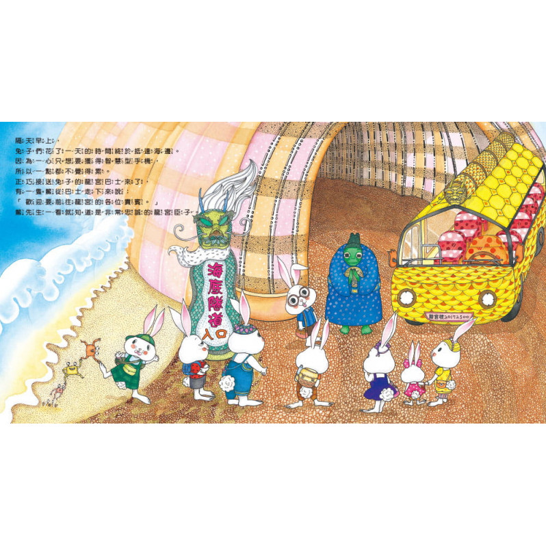 鱉先生帶領兔子們興奮的坐上龍宮巴士,立刻出發前往龍宮。