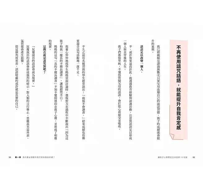 改變對孩子說法的方式,不只是口氣從「催促」變成「緩和」、從「否定」變成「讚美」這麼簡單,而是需視不同的情境表達,才能讓孩子接收到正確的訊息。透過這樣的過程,有助於提升孩子的自我肯定感,更加主動學習、充滿自信。