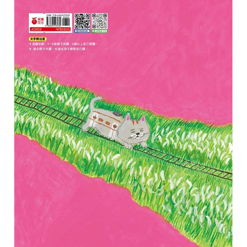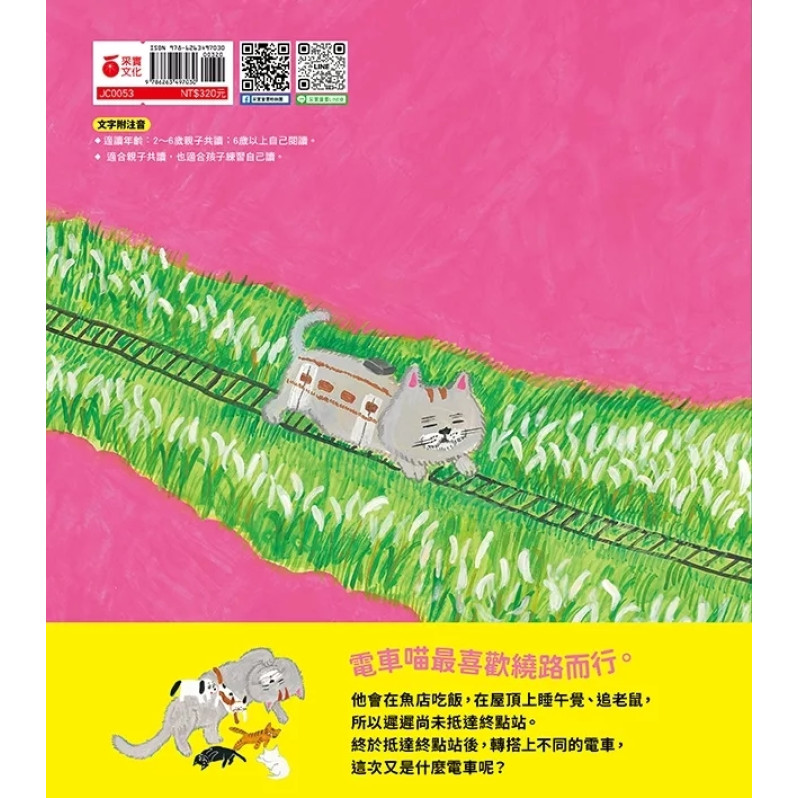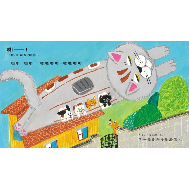 電車喵最喜歡繞路而行,他會在魚店吃飯,在屋頂上睡午覺、追老鼠,所以一直無法抵達終點。