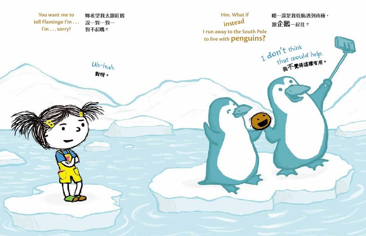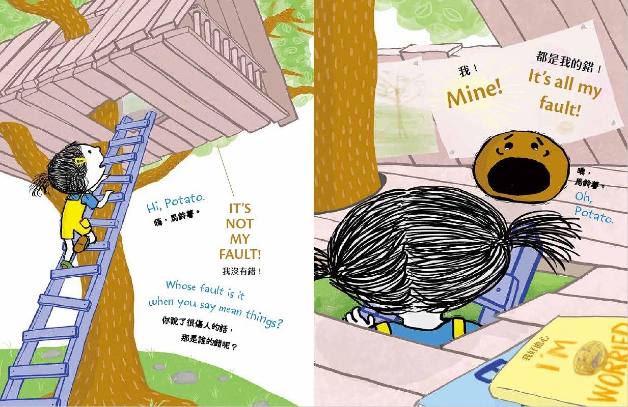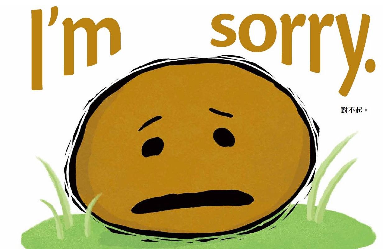 在這本書中,作者布萊克將以三位主角:小女孩、馬鈴薯、紅鶴,教孩子有勇氣說出「對不起」,同時學會用「對不起」修補受傷的情緒。