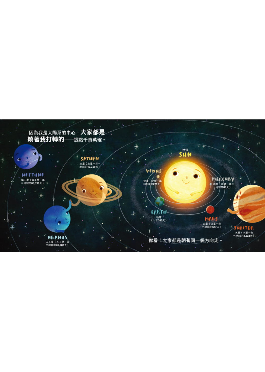 「太陽」是專為孩子創作的精美繪本 太陽第一人稱視角透過可愛又風趣的方式介紹宇宙中獨一無二的天體、萬眾矚目的成員─「太陽」