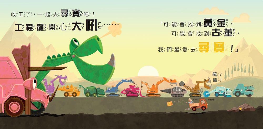 還記得《恐龍大變身:工程龍大集合》那本嗎?介紹完總是要來點其他的故事才有趣。工程龍這次的任務是什麼呢?他們到底要去找什麼寶藏?激發孩子的想像,是箱子裝的呢?閃亮亮的嗎?還是……