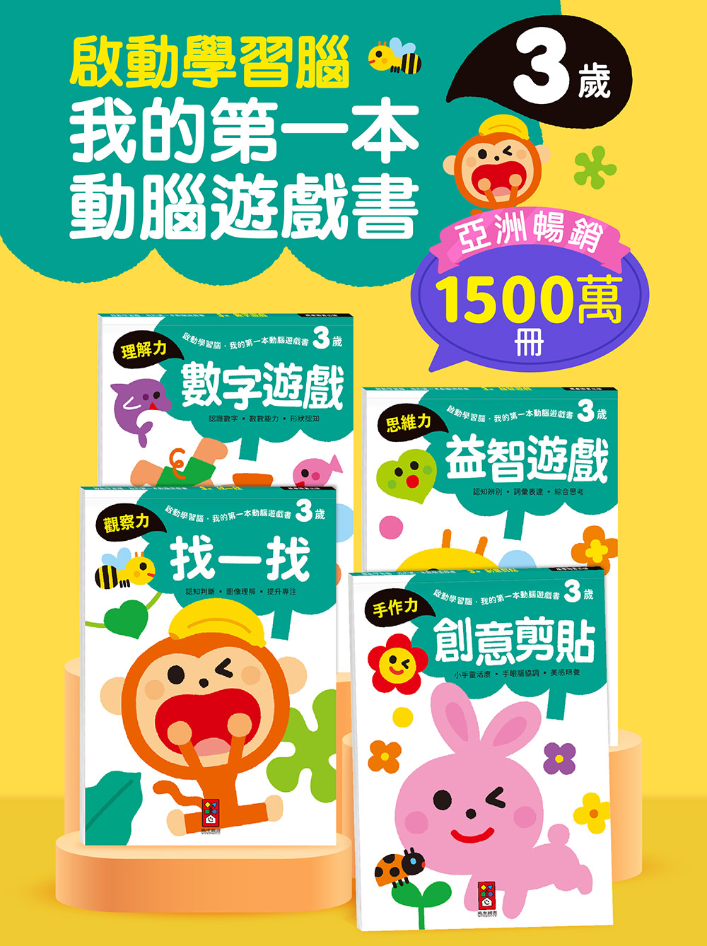 ▲本系列3歲學習主題:數學、益智、找一找、剪貼。