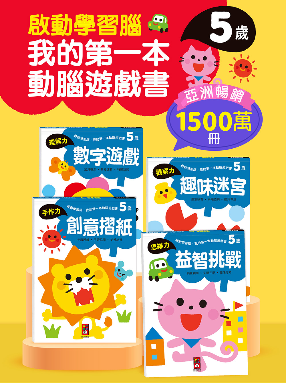▲本系列5歲學習主題:數學、益智、迷宮、摺紙。