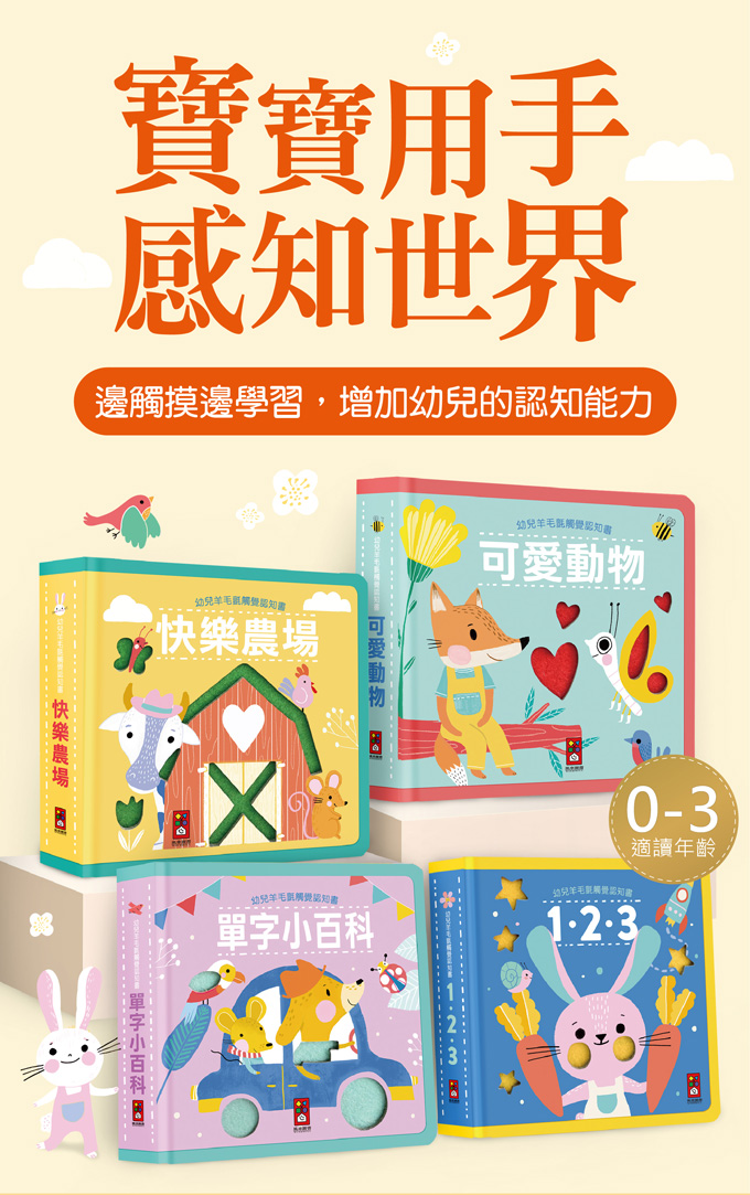 觸覺遊戲能刺激大腦發育,提升寶寶的感官智能。本書選用高級毛氈布,替代傳統EVA泡棉材質,使書本柔軟輕巧,安全無毒,適合給0歲的寶寶使用。