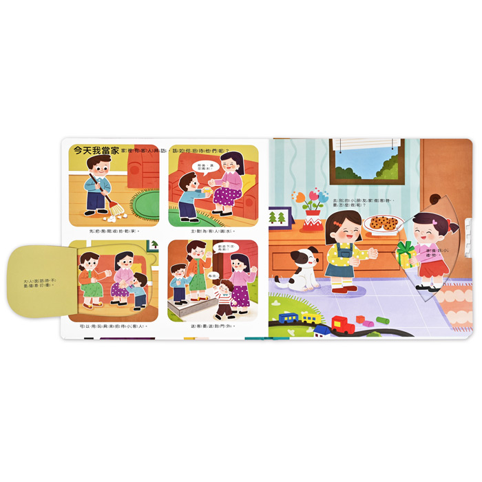 家長可在旁與孩子一起閱讀、一起使用書中各種不同的互動遊戲機關,同時在旁教導孩子正確的安全行為,學會如何在不同情境下做出有禮貌且正確的應對,不僅可促進親子關係,也能讓孩 子養成良好習慣,讓孩子快樂成長!