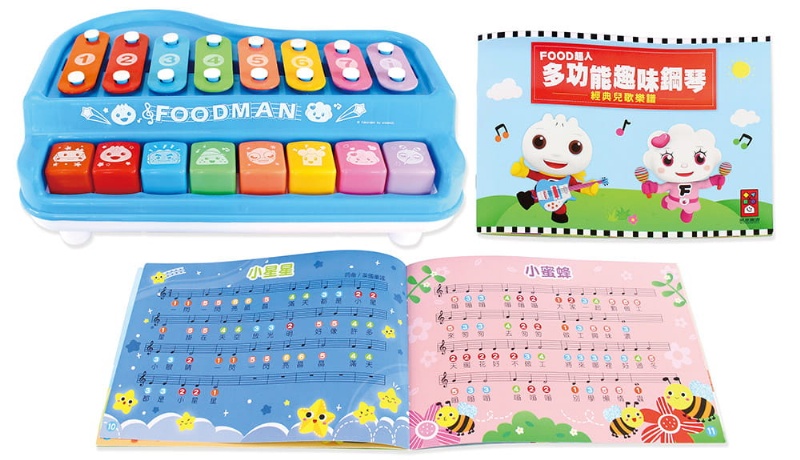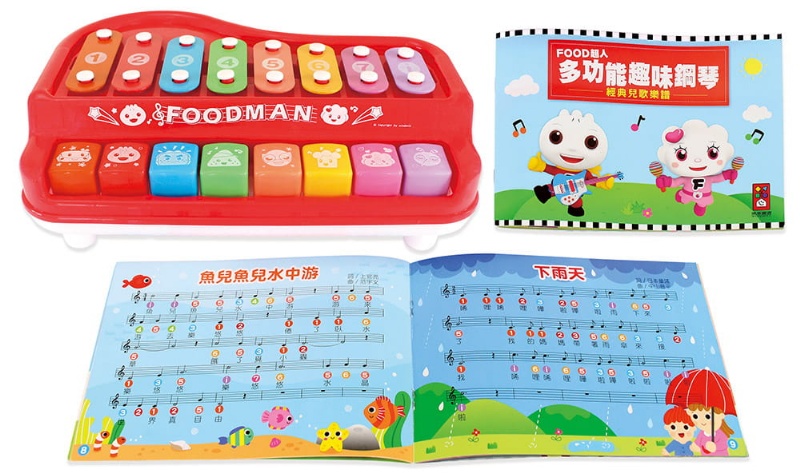 隨產品附贈的樂譜,內含14首歌曲,可當作入門學習,當彈出符合的音樂時,也能增加孩童的自信心,更添樂趣。