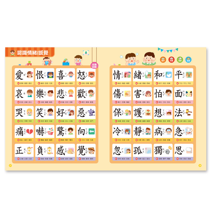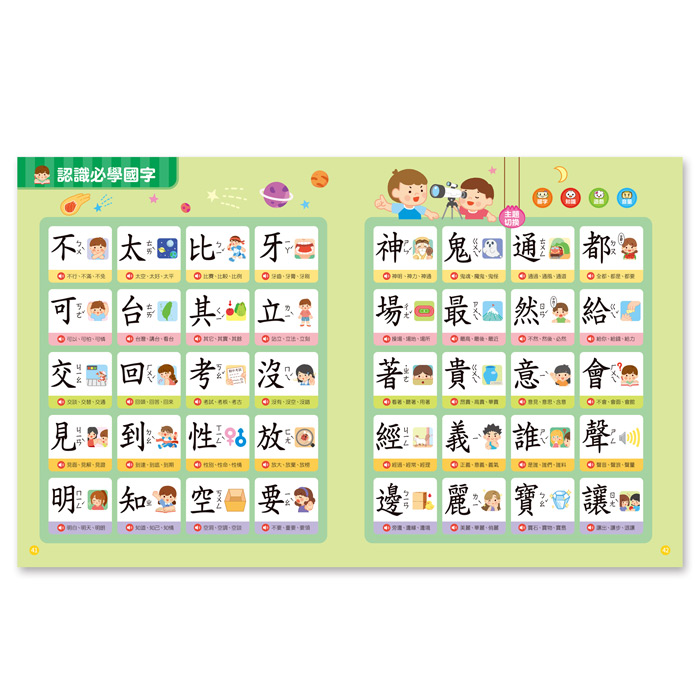 多元的主題分類,讓孩子能加深對國字的印象,與相關主題做連結。