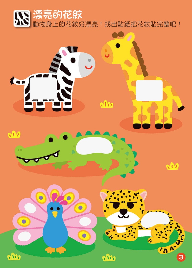 動物王國裡有什麼動物呢?快來找一找、貼貼看吧!