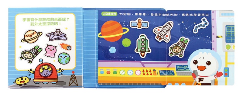 哇!你知道外太空是什麼樣子嗎?快來找一找、貼貼看,讓空蕩蕩的場景變得生動又有趣吧!